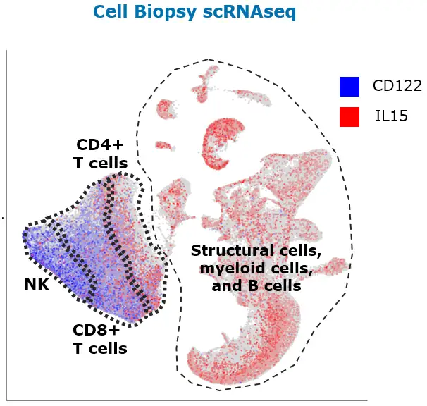 CD122+ cells are increased 50-150% compared to healthy Broad IL15 expression by structural cells