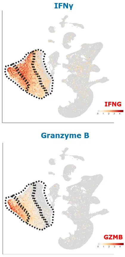 • IFNγ expression: cytotoxic CD8+ T cells, CD4+ T cells, NK cells