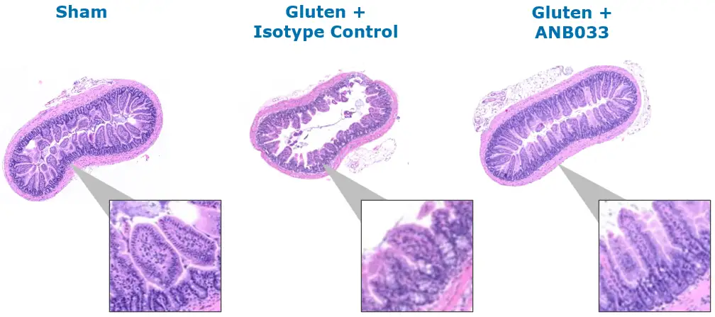 ANB033 prevents key CeD histologic manifestation of gluten-induced villous atrophy